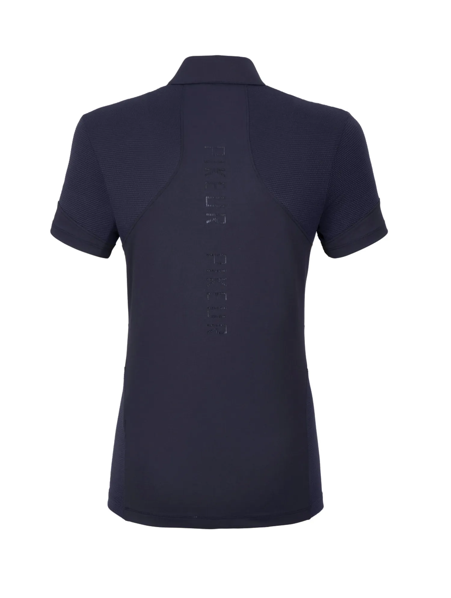 The Pikeur® Nuria Short Sleeve Shirt comes in a mix of materials to provide four-way stretch, ventilation and style. Mesh promotes breathability. Quarter-zip placket. Large logo print on back.