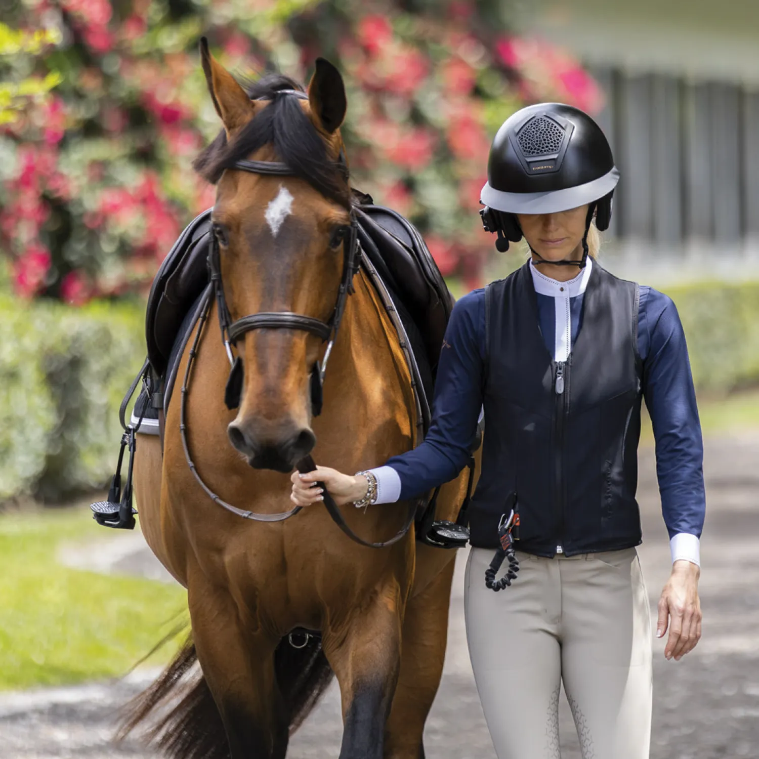 The Freejump® Adults’ Airbag Vest is the first equestrian air vest to be approved by the NF S72- 800-2022 standard. France is the first country to adopt a standard governing the manufacture of equestrian airbags (PPE–Personal Protective Equipment). While waiting for a European harmonization, the NF S72-800-2022 standard provides riders with increased protection by regulating the protective surface, the speed of the inflation and by imposing much more severe impact tests on the vests.