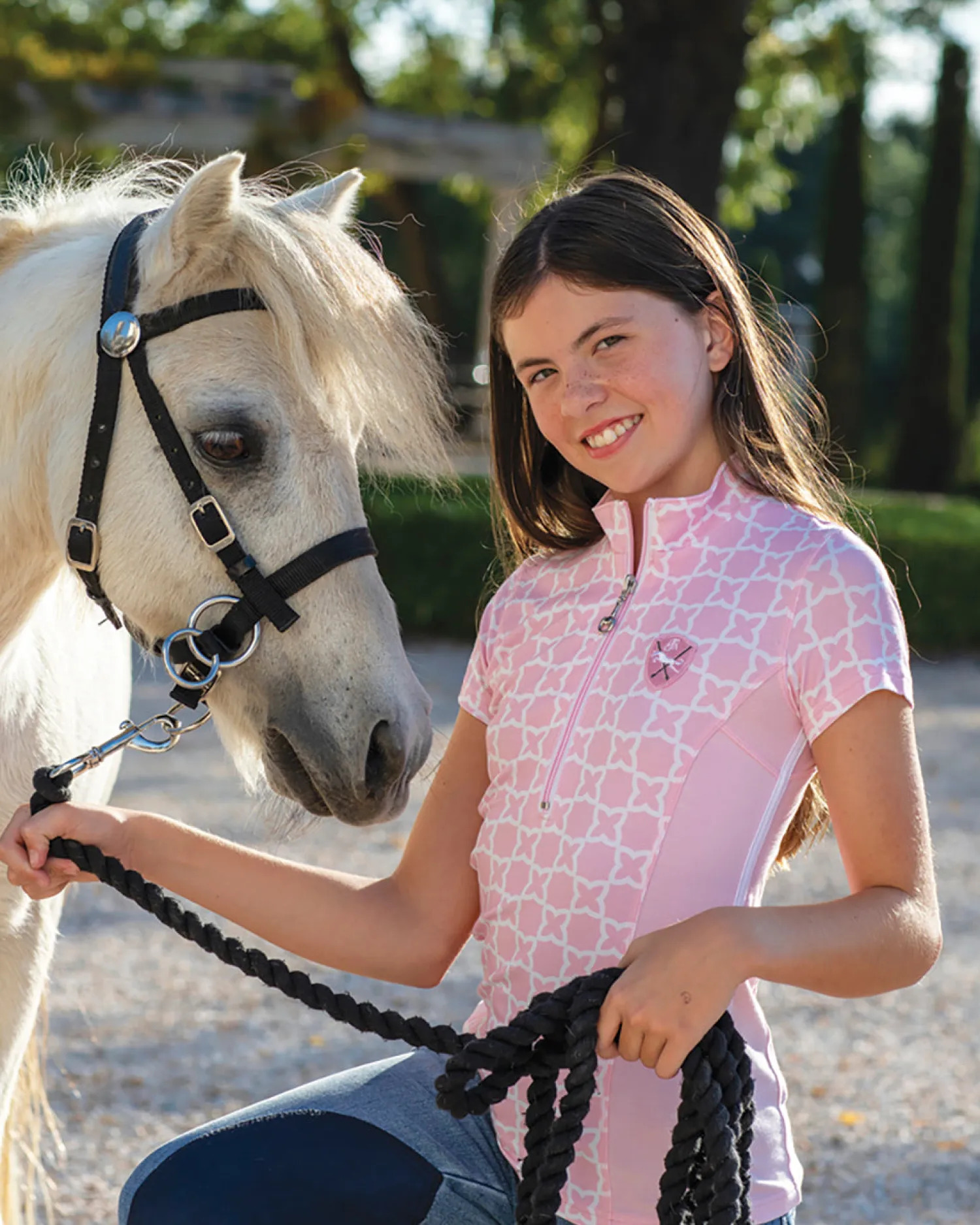 For the show ring or clinics, this classic Goode Rider™ Girls’ Ideal Show Shirt is back in new prints! Soft and stretchy bamboo-blend fabric naturally wicks moisture and offers antibacterial odor resistance. Vented mesh under the armholes adds breathability. Contrast coverstitch enhances the young rider’s profile.