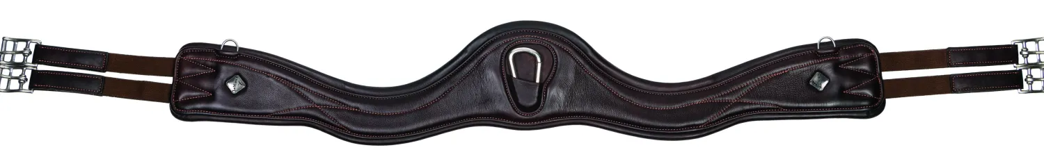 The girth’s contoured shape avoids interference with the horse’s elbows, and thinner, tapered ends even out pressure at the edges of the girth.