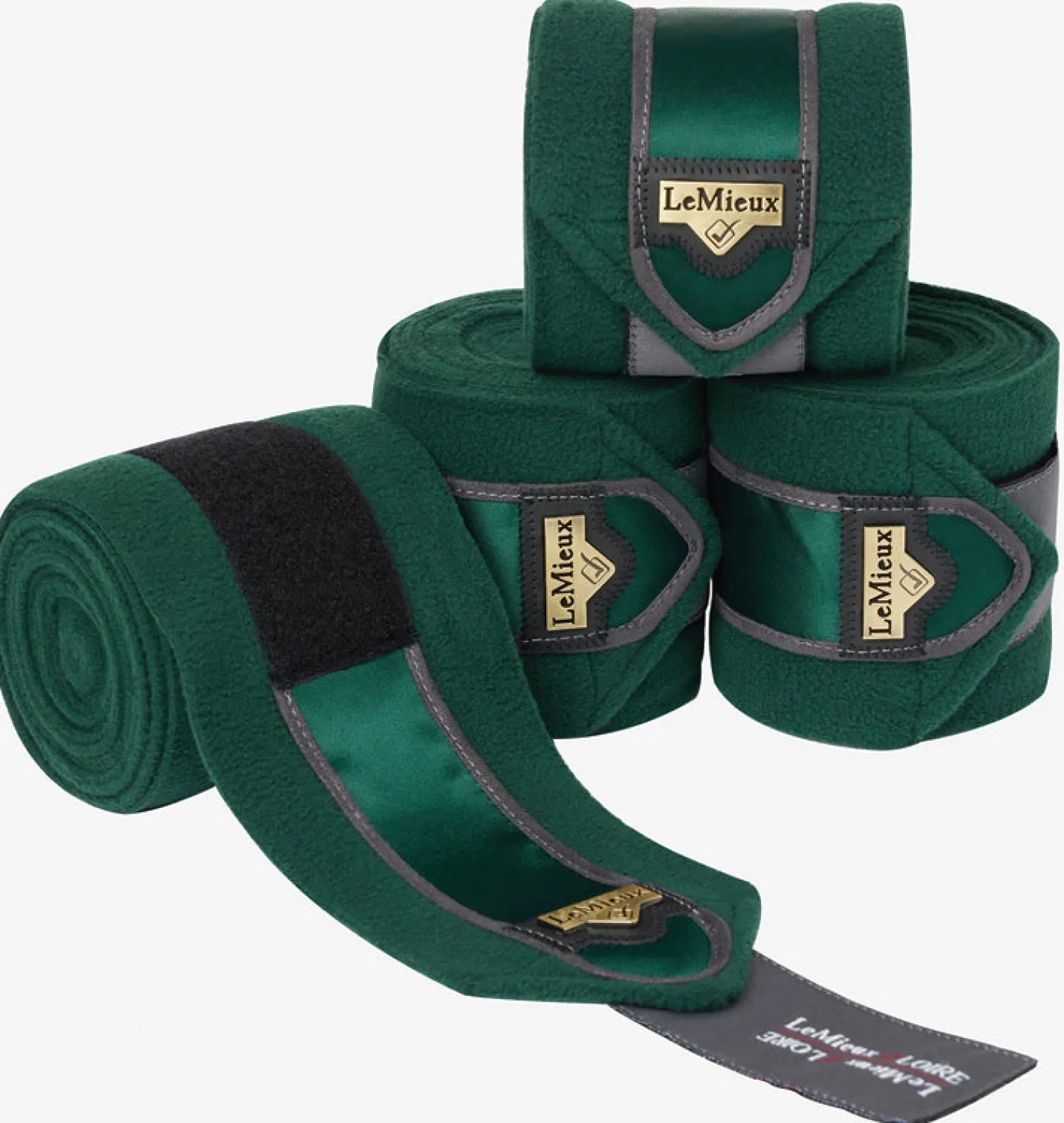 LeMieux® Loire Polo Wraps are cut from premium quality, pill-resistant fleece. These beautiful exercise bandages secure with sturdy hook-and-loop closures that are detailed with satin fabric and topped with a metal logo plaque. Apply them on their own or with LeMieux under bandage pads for extra protection. This set of four polo wraps comes in a zippered case.