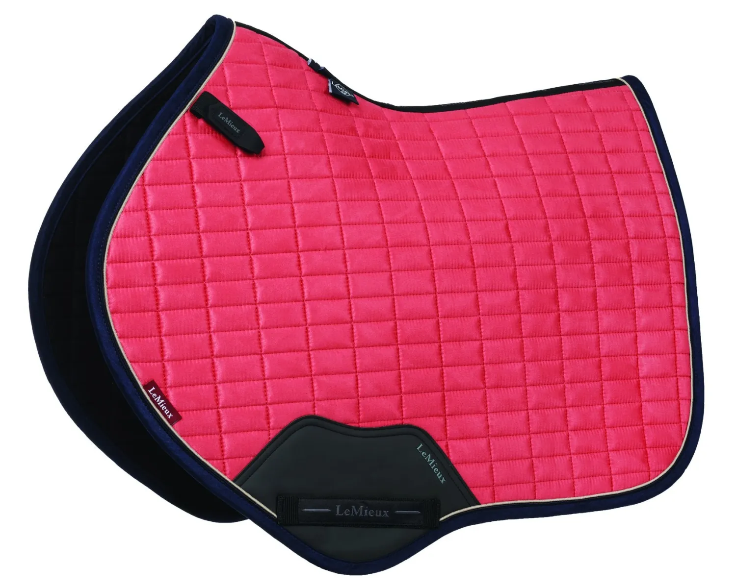 The LeMieux® Suede Close Contact Saddle Pad is designed to fit forward-cut jumping saddles. An iconic jumping pad with its high wither cut and swept back profile, the suede saddle pads offer practicality and comfort under the saddle. The luxurious yet easy-care suede-effect upper is perfect for everyday occasions. It is finished with smart LeMieux-branded spine tape, while contoured friction-free binding prevents misshaping. Signature breathable natural bamboo blend lining absorbs and controls sweat under the saddle and is naturally antistatic, antimicrobial, and quick-drying. It’s also beautifully comfortable and secure, minimizing friction even on sensitive-skinned horses. A durable girth protection area ensures lasting quality. Girth keepers incorporate inner looped channels to offer more girthing options for optimum fit. Elasticated shaped D-ring tabs allow easy, non-slip attachment to the saddle while still leaving room for extra training aids to be clipped on.