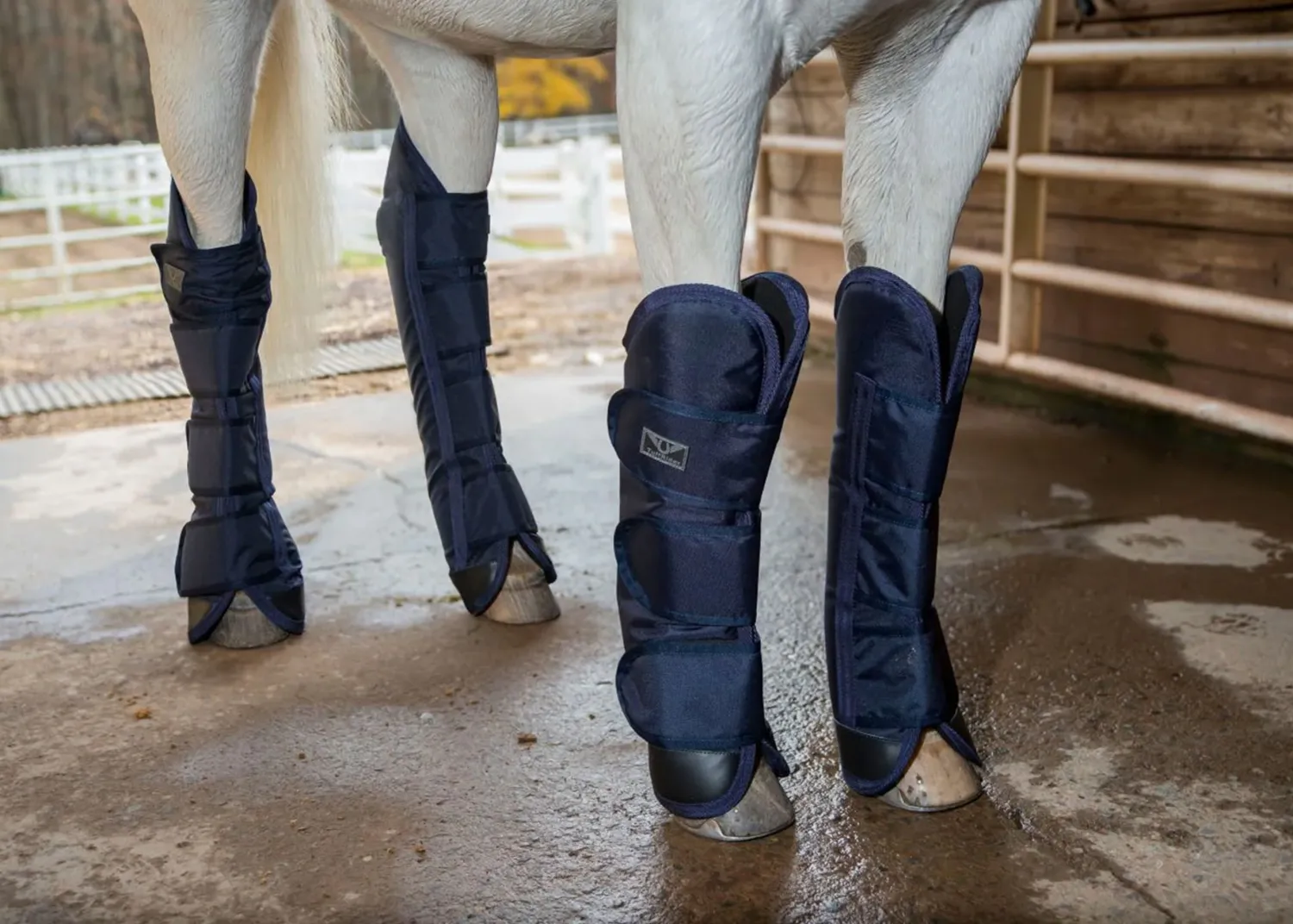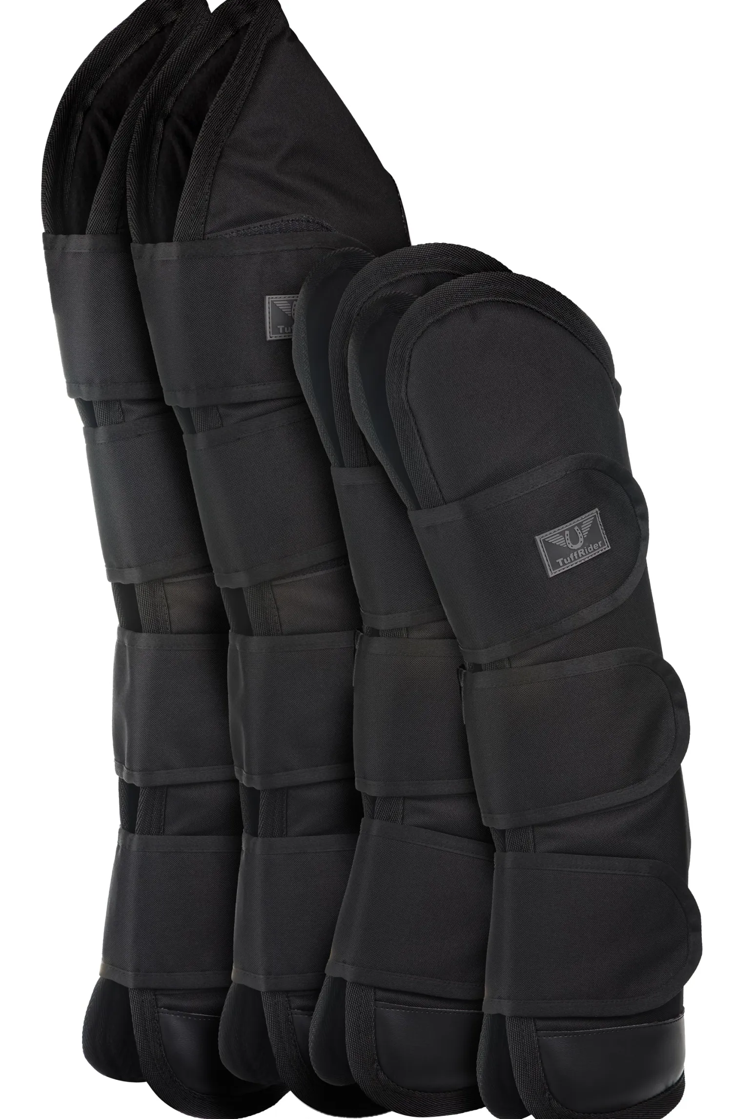 TuffRider® 600D Oxford Shipping Boots offer leg protection for your horse during travel. The outer shell is made of water-repellent 600 denier Oxford poly fabric that holds up to the demands of traveling. Reinforced bottoms help protect hooves and shield against wear.