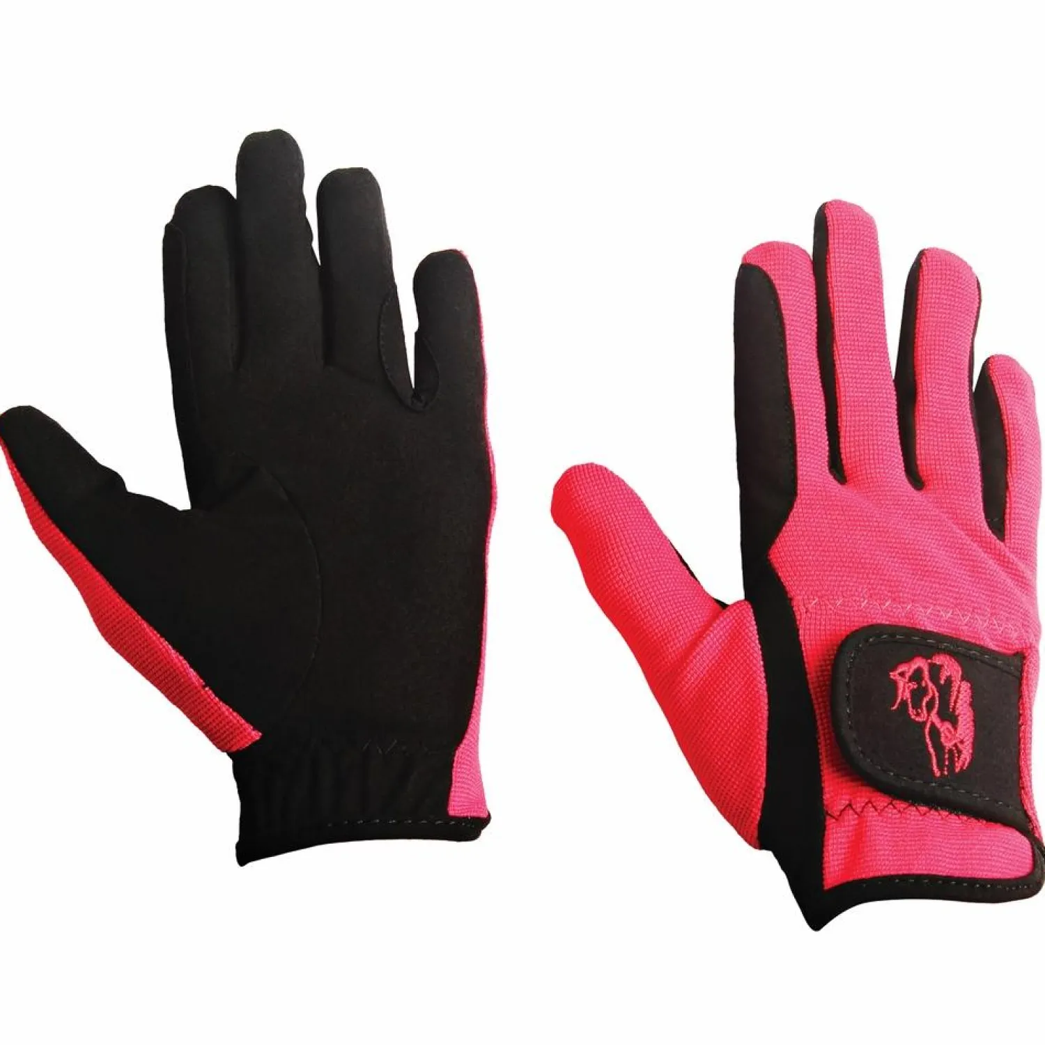 The ultimate schooling glove for kids! The TuffRider® Children’s Performance Riding Glove comes in great colors kids just love. It pairs a comfortable stretch backhand with a grippy suede palm. Elasticized wrist has a hook-and-loop closure with horse embroidery on the tab. Pair.