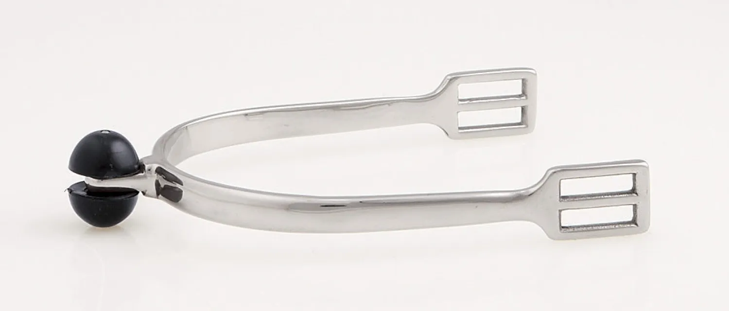 The Suffolk™ Short Neck Roller Spur features a plastic rolling end. Allows plenty of extra leg aid and helps reduce spur rubs. Sized to fit ladies’ boots. 3/4″ neck. Pair.