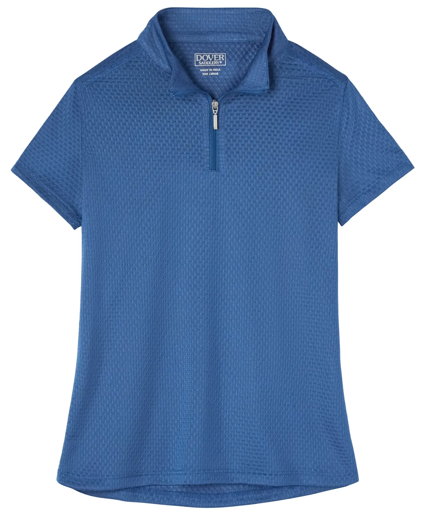 The DS Kids’ Marion Short Sleeve Shirt is made entirely of extremely lightweight, opaque mesh fabric. With high-volume airflow, this highly breathable top helps keep riders cool, and it dries quickly. Ample stretch plus shoulder-freeing raglan sleeves combine to promote mobility. Traditional mock neck, with hidden zipper and matching pull for a clean look front.