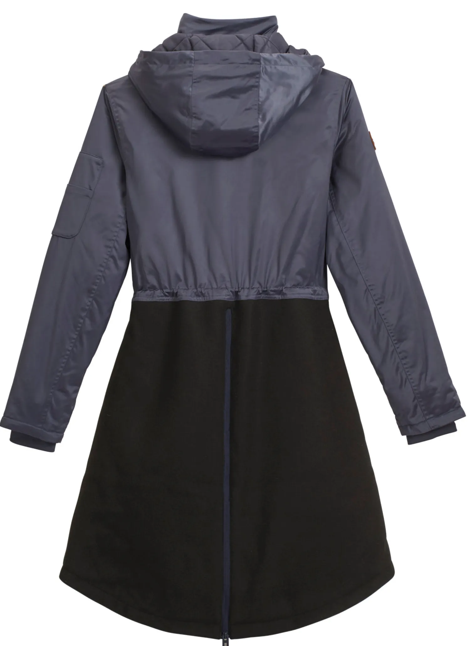 Perfect for spectating, coaching and riding alike, the Marlow Jacket with adjustable hood combines military-inspired styling and warmth. It is made of mixed fabrics, with a top in a lightweight, water-resistant poly material and a bottom in a wool-like material.