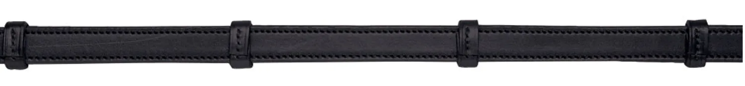 KL Select Easy Grip Reins look like standard leather reins with hand stops from the outside, but the inside is lined with a layer of rubber that provides added grip. Made of top quality English leather in your choice of either stainless steel buckle ends or hook stud ends.