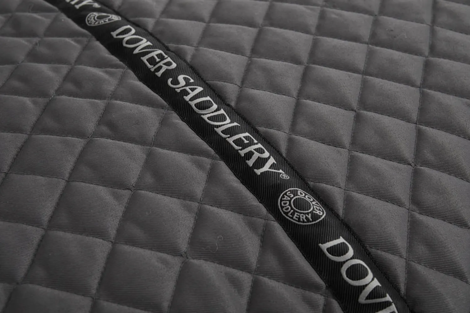 Comfortable yet rugged, our washable Dover Dog Barn Bed Cover is made for use in a barn, showground, campsite—or a house! It pairs a classic, quilted, “saddle pad” top and a water-resistant 600 denier ripstop nylon bottom. Zip it over our Dover Dog Barn Bed Filler made with eco-friendly recycled fill, or use it to replace the cover on your current dog bed. Filler is sold separately. Gray with black trim.