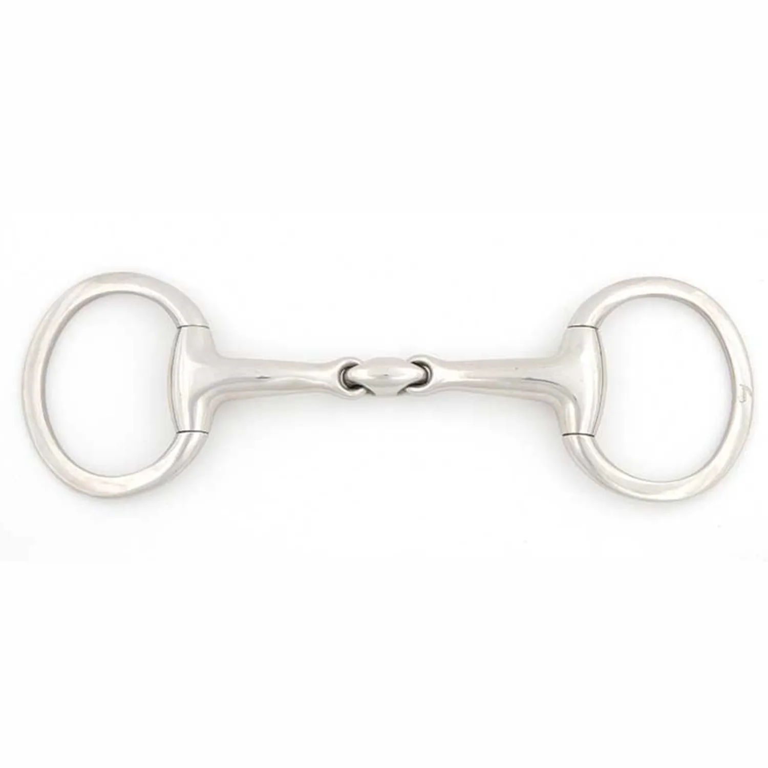 The Metalab Magic System™ Double-Jointed Eggbutt Snaffle is a Level 2 bit made of stainless steel. The 5 1/4″ mouthpiece is 17mm thick. Eggbutt cheeks.