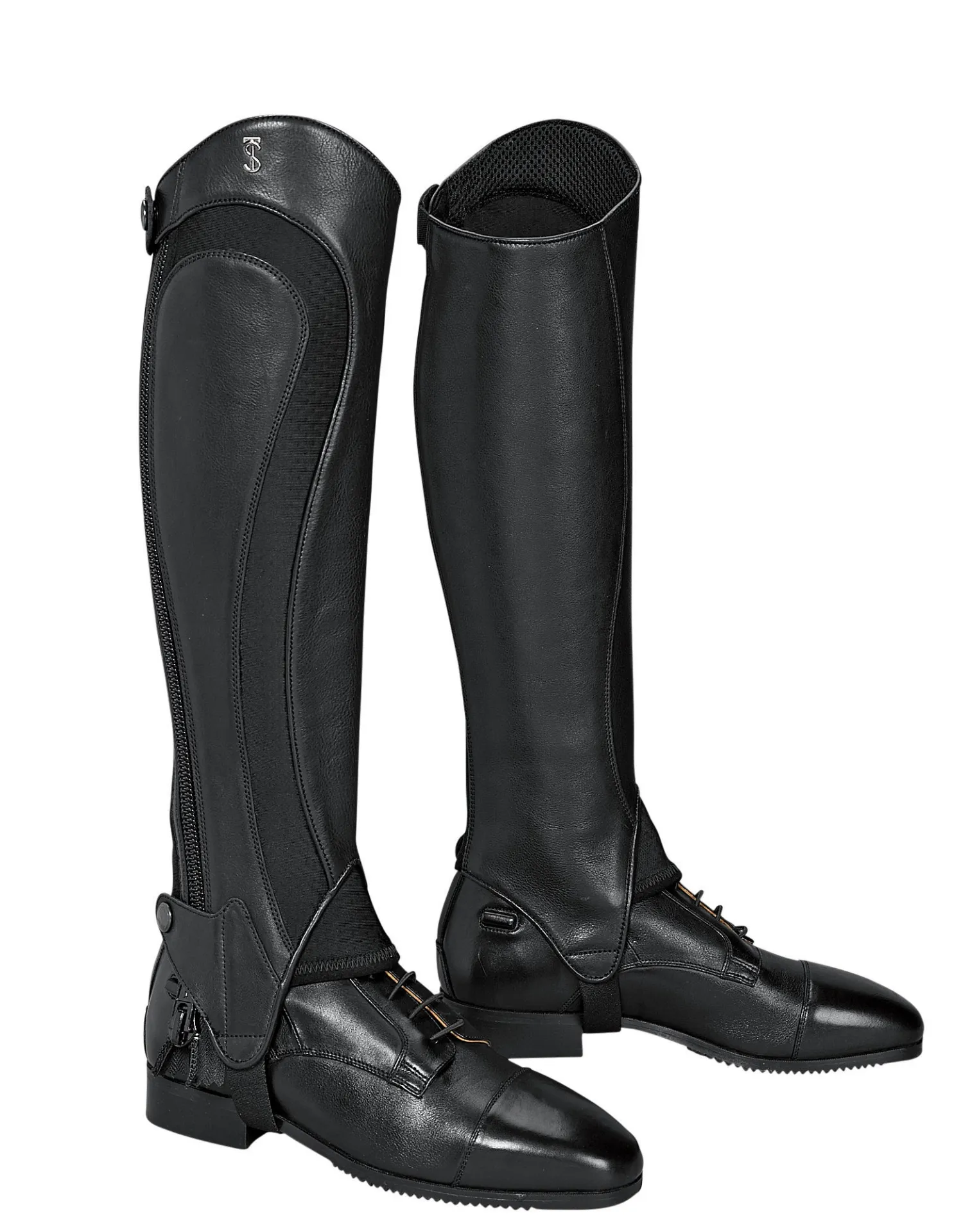 A clever design offering style and exceptional comfort, the Tredstep™ Medici Air Half Chap combines beautiful, premium leather with lightweight and flexible neoprene. This close contact half chap ensures a perfect fit against every contour of the leg. The striking textures, flattering curves and a modified side zip placement merge in harmony to produce this latest generation in Tredstep’s world famous half chaps. A specialized mesh lining placed strategically in key inner areas promotes breathability. The super-strong size 10 full zipper closes top to bottom and secures with snap keepers at both ends. Finished with an elegant, eye-catching logo.