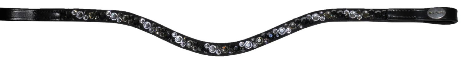 Kavalkade Sparkle Browband in black leather is shaped for style and fit. Intriguing, alternating diagonal rows of white, gray and black small and large crystals lend sparkle.