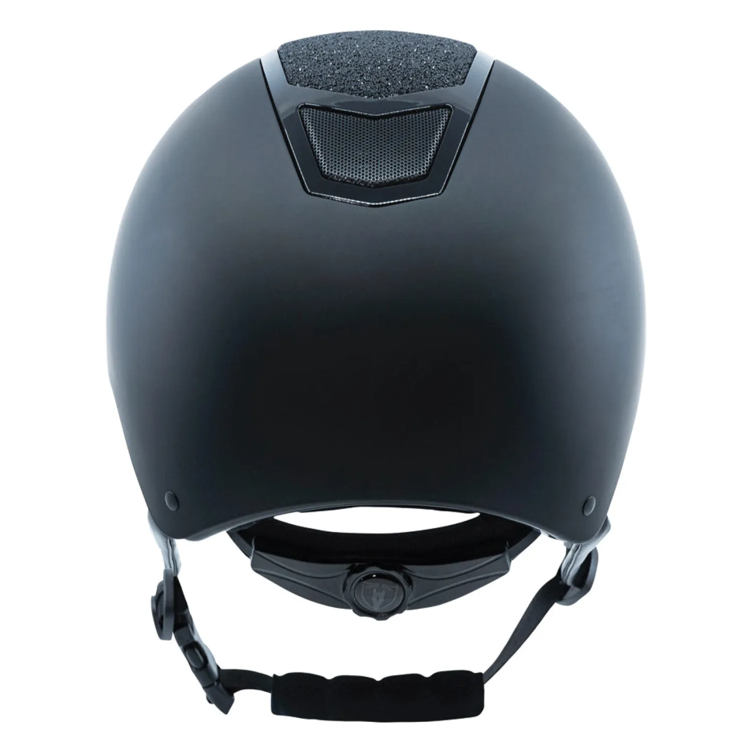 This riding helmet has an adjustable five-point synthetic leather harness with patented Duratex® buckle and includes a removable comfort chin pad. **SEI certified to ASTM F1163-23.