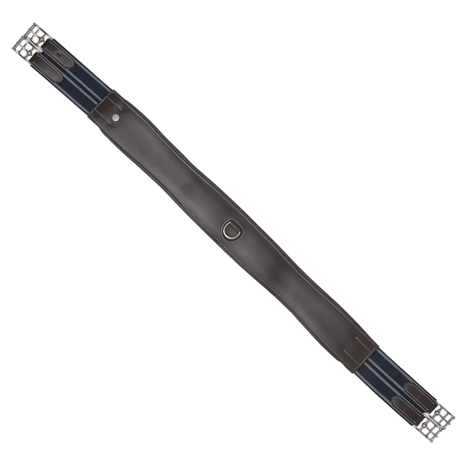 Triple elastic and stainless steel roller buckles at both ends provide give and allow easy adjustments. A recessed center d-ring is discreet. Made of two brown leathers, the InDulge Classic Hunter Girth will complement most saddles.