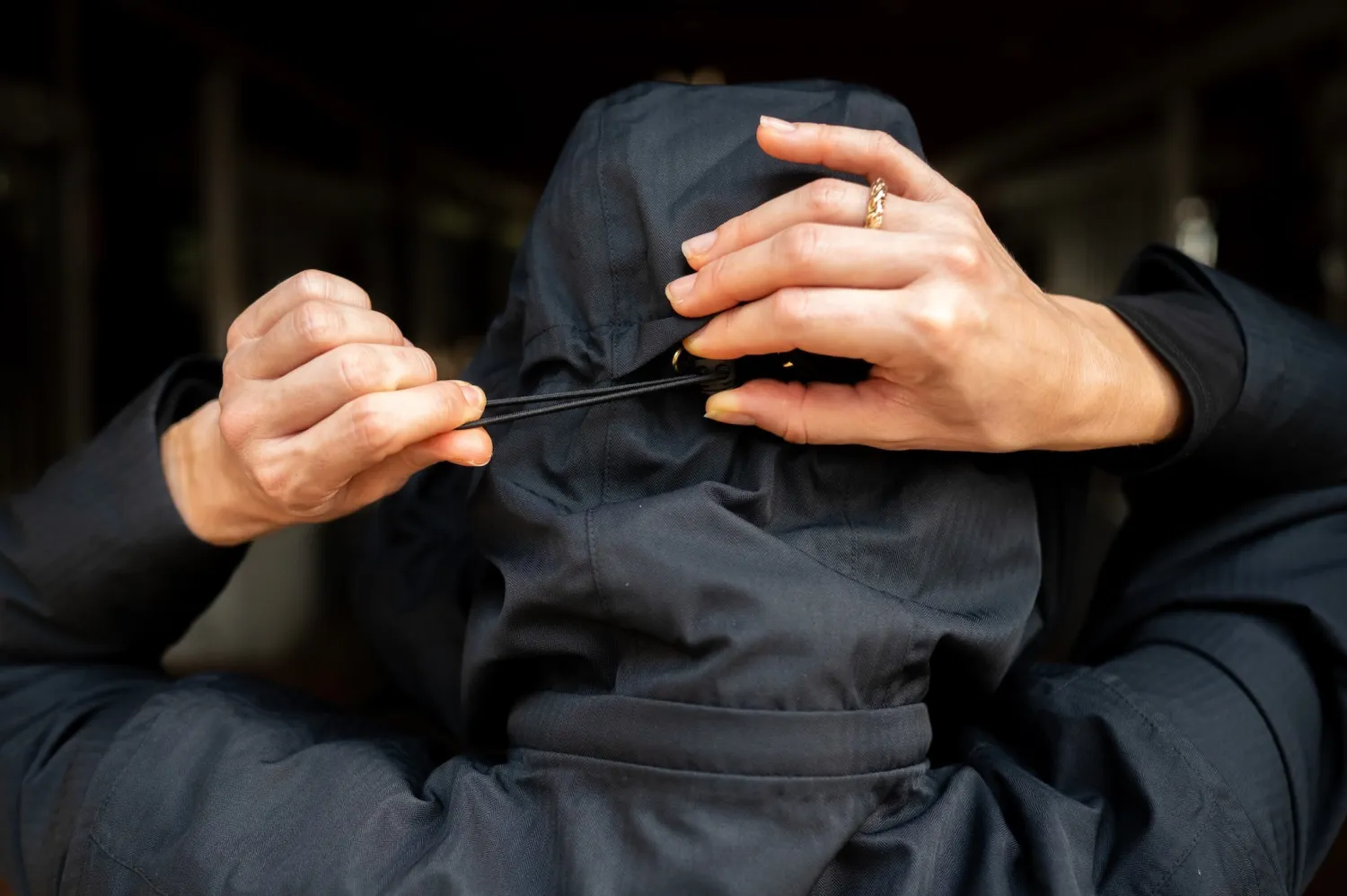 - Oversized zip off hood.
