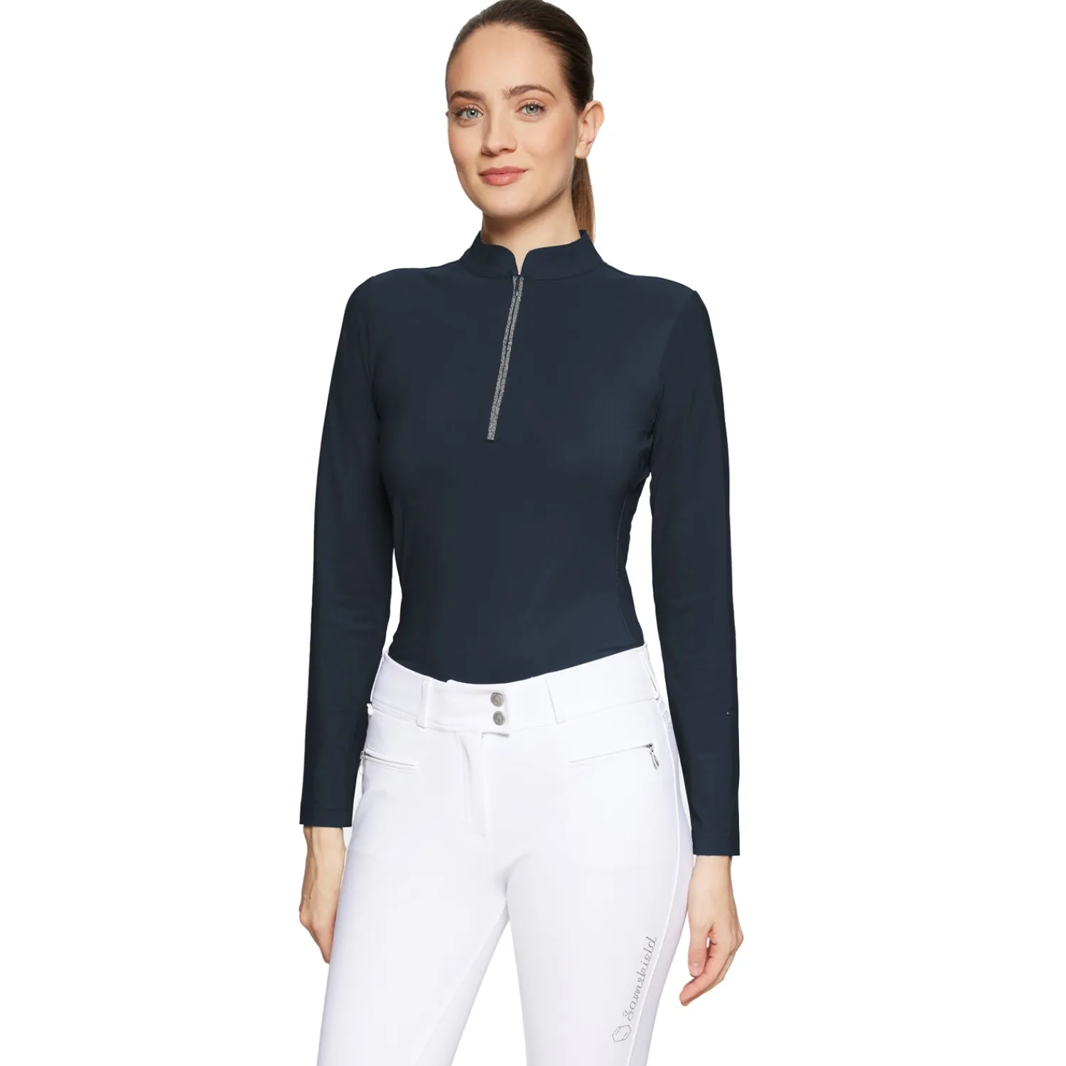 For riders looking for sparkling style and performance, the Samshield® Brunella Long-Sleeve shirt has arrived. Functional performance design with a high zip collar in breathable and stretchy fabric with an anti-pilling, wrinkle resistant finish. UPF 50+ provides superior protection. Samshield Crystal blazon on the collar and logo printed with crystal decor on the sleeve. Designed in an eco-responsible way.