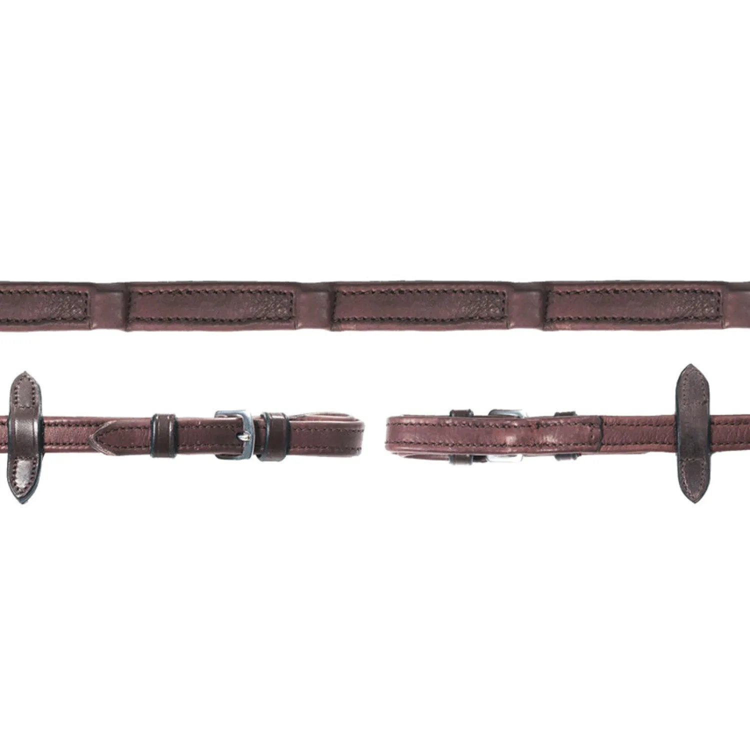 Schockemöhle DuraSoft Reins provide durability with a tear-resistant nylon core. They’re fully lined with a sturdy webbing, including the bit loops, with a high-quality core material similar to that used in seat belts. Rein leather is tough, but also exceptionally soft and smooth. Your grip is supported by leather hand stops. Martingale stops complete this set of reins.
