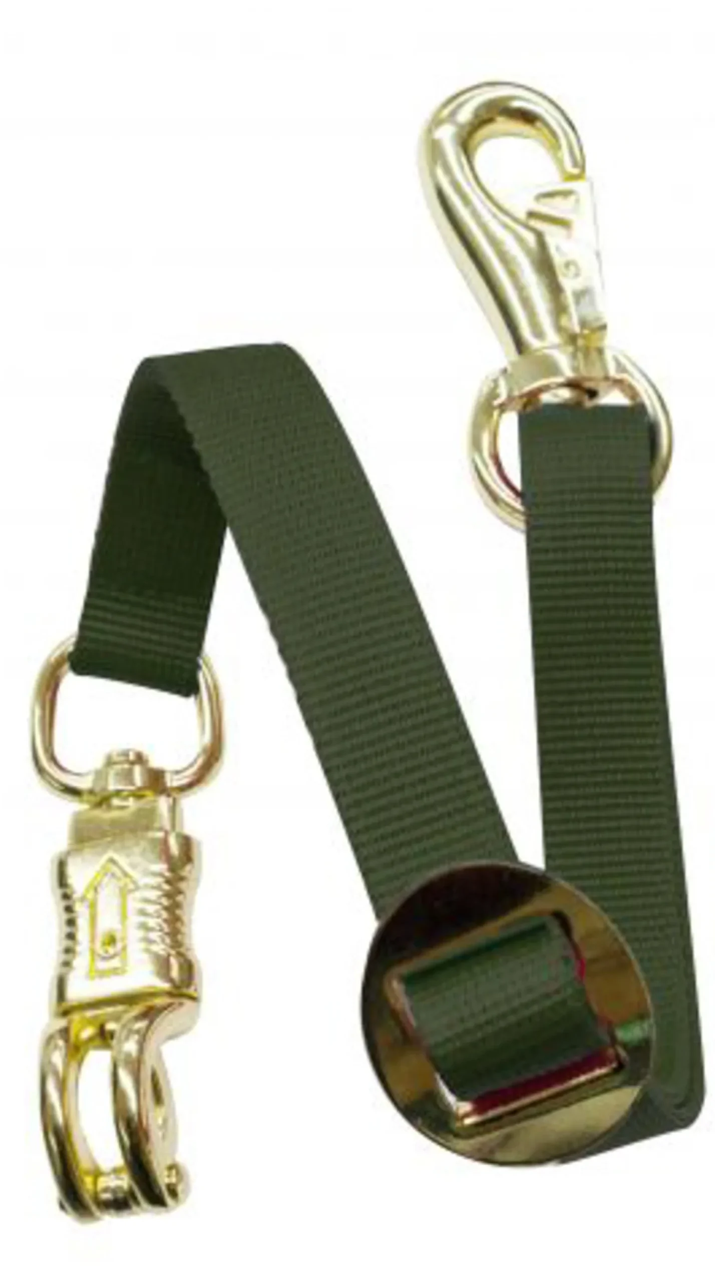 Adjustable Flat Nylon Trailer Tie is made of durable 1″ wide webbing and adjusts up to 24″ long. Features a quick-release brass panic snap and brass bull snap.