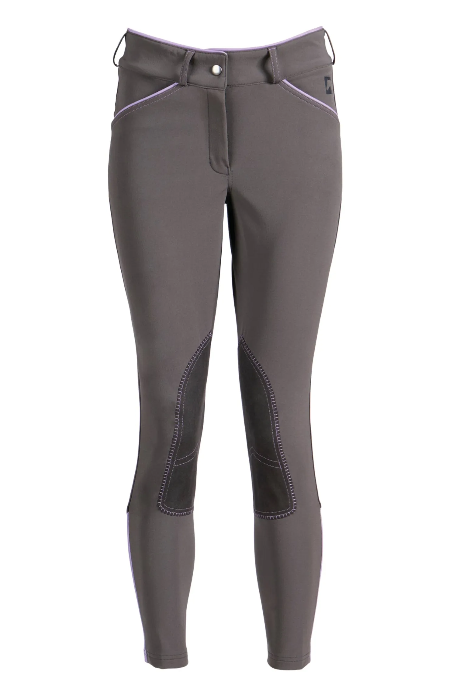 This Riding Sport™ Ladies’ Synchrony Knee-Patch Breech is a mid-rise fit that provides a curvier fit with extra room in the hip and thigh. Durable and the perfect weight. Breathable with stretch for freedom of movement. Contrast piping at the slash pocket, no back pockets, euro seat. Microsuede knee patch.