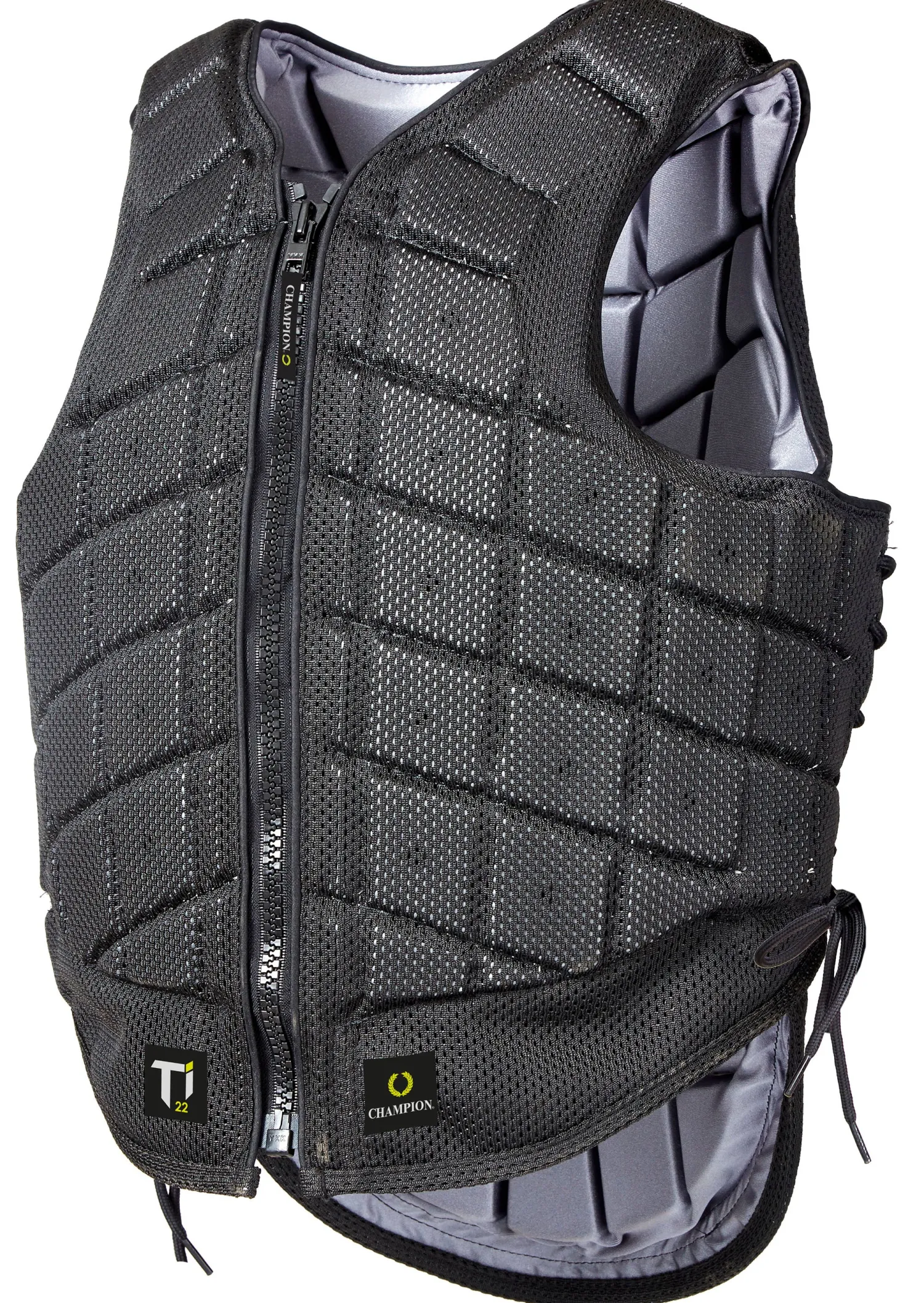 Built with a heavy-duty YKK® zipper, this equestrian body protector features military grade outer mesh fabric and a cool-feel titanium colored lining. Cord side adjustment offers flexibility of fit. Certified to EN 13158: 2018 Beta standard level 3, 2018.