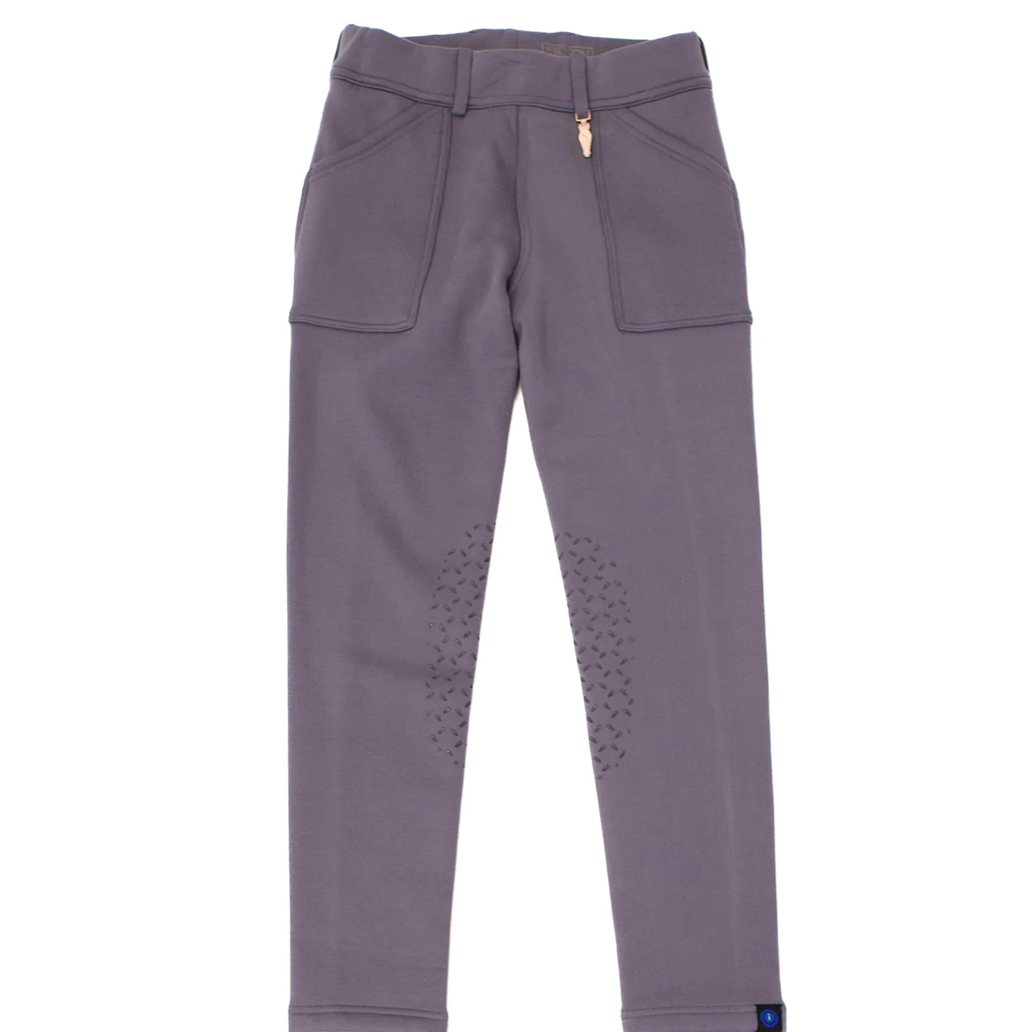 The Irideon® Kids’ Fjord Fleece Knee-Patch Breech feels ultra-plush and warm. Designed to block wind and cold, it has all-way stretch to allow unrestricted movement. Extra-large front pockets accommodate even the largest cellphone. Belt loops and a rose-gold horsehead charm add a touch of polish. The silicone horsehead tread knee patches provide extra grip. Mid-rise, pull-on waistband and self bottoms.