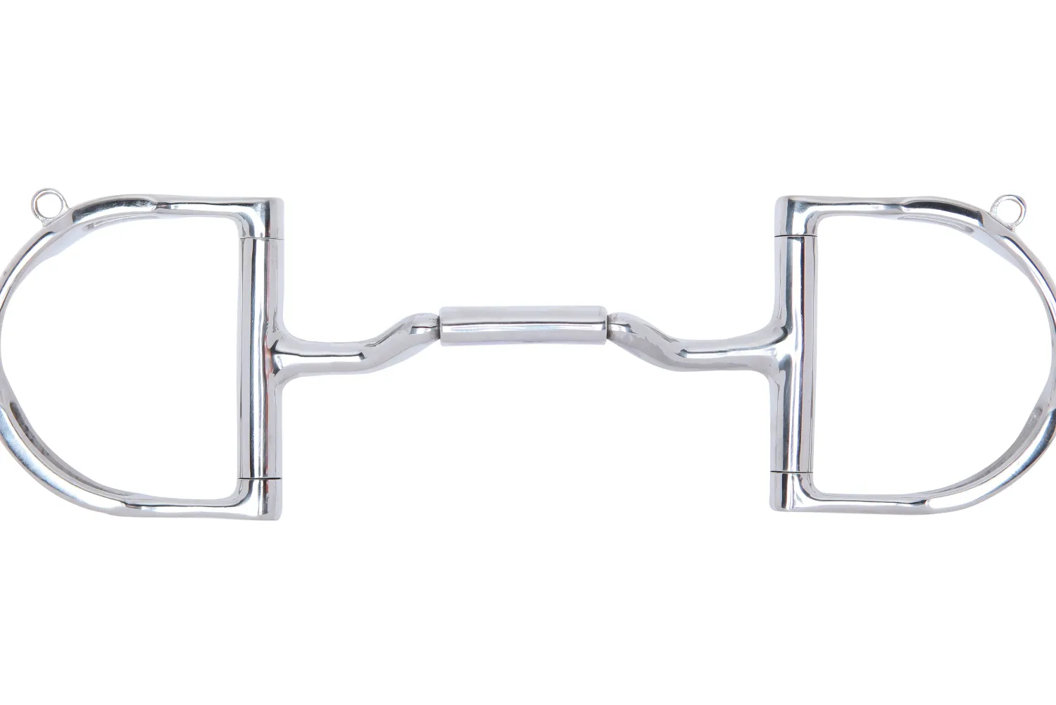 The bridle and reins slots, along with curb hooks, aid in Independent Side Movement™, which allows the rider to isolate one side of the bit for bending and lifting the shoulder while keeping the bit balanced in the mouth. The dee of this pony bit has been sized down appropriately to match the mouthpiece. Stainless steel with copper inlay.