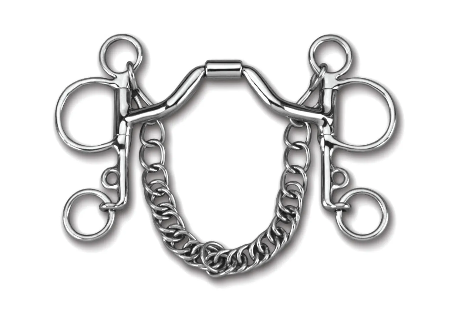 The Myler® Ported Barrel Pelham MB 33 has the mildest Myler mouthpiece. Designed for horses considered finished, it has a generously wide port that allows room for the tongue to pass under the bit and swallow. This mouthpiece applies little to no tongue pressure, working primarily off the bars, chin and poll. Stainless steel with copper inlay.