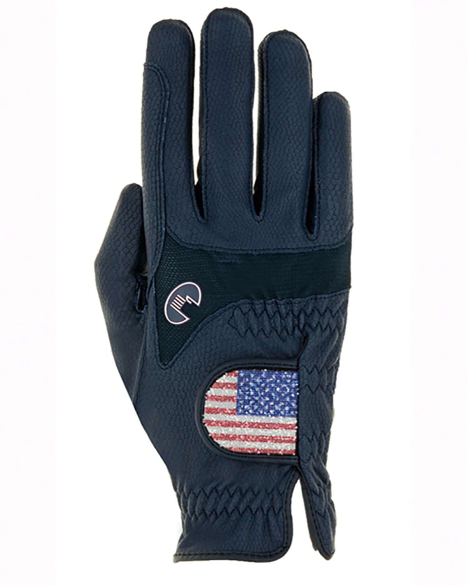 The Roeckl® Maryland Glove is everything you love about Roeck-Grip gloves, with an added dazzling Swarovski® crystal flag. Roeck-Grip, an exclusive performance textile, is supple, flexible and breathable for maximum tactility and grip on the reins. This glove fits like a second skin, giving you a close contact feel.