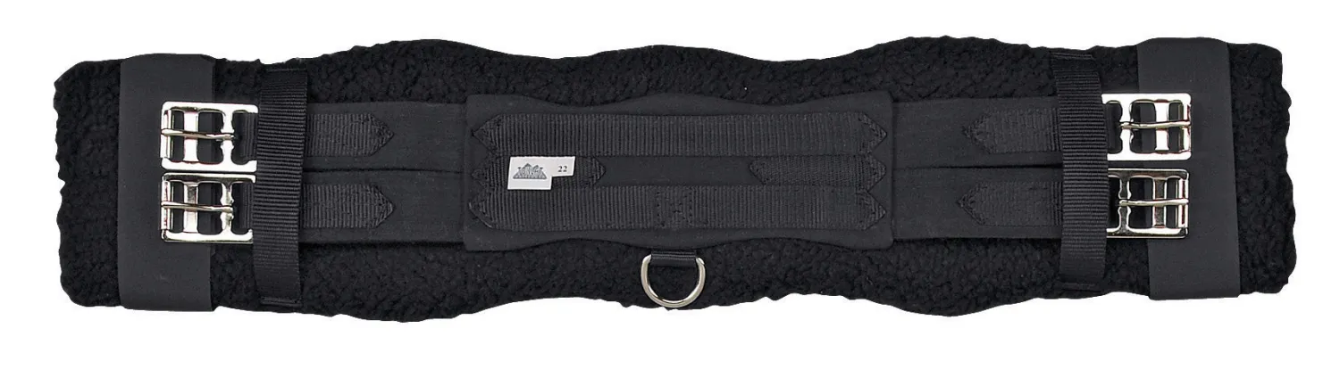 The Toklat Contoured Dressage Girth is a synthetic, black fleece-lined girth that is contoured for your horse’s comfort. Double elastic at both ends makes this girth easy to tighten. Washable so your girth always looks like new. Nickel plated roller buckles and center D-ring.