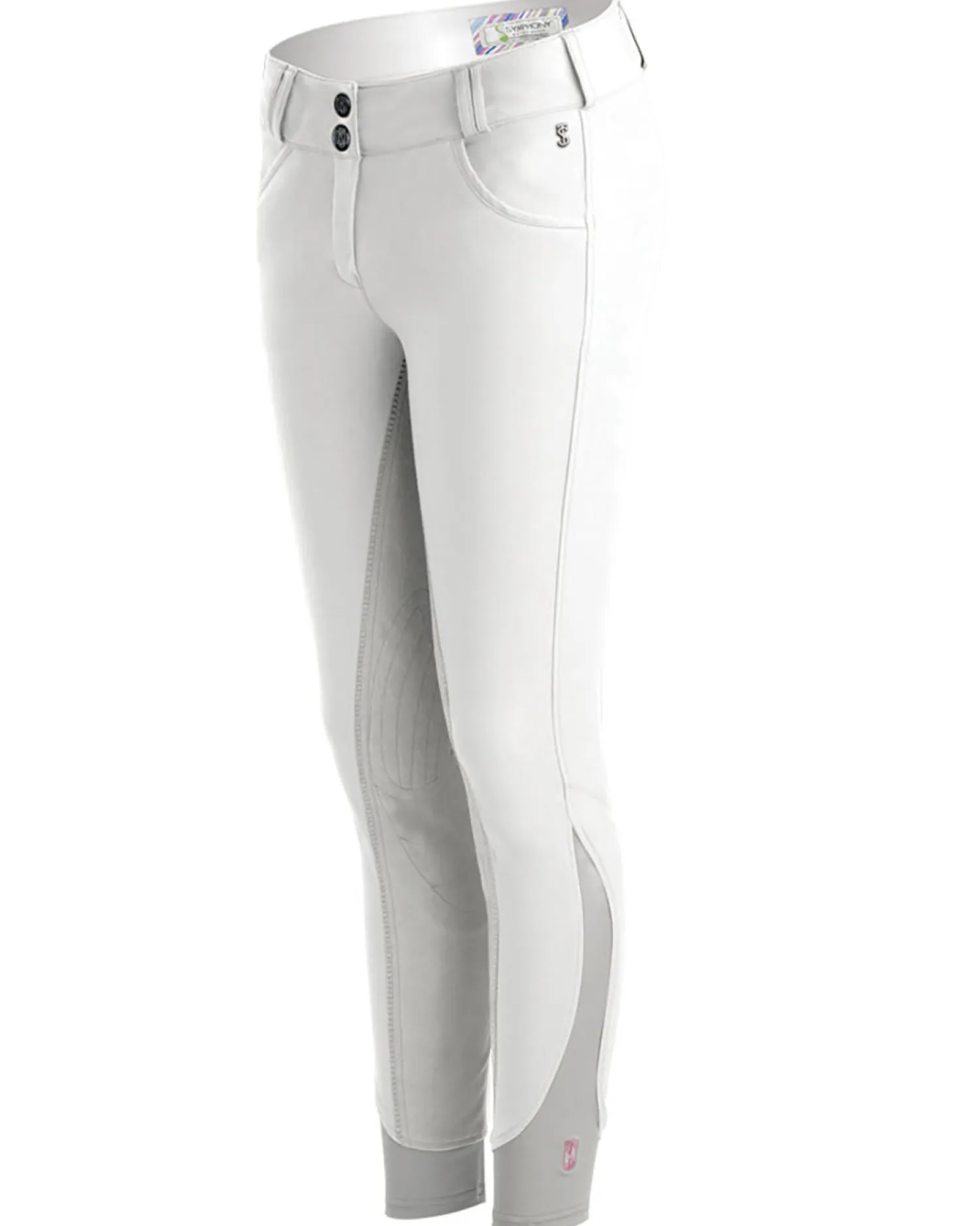 The Tredstep™ Symphony Rosa II Full-Seat Breech is the next generation of the popular original Rosa. This latest design combines all the best of the previous version with updated patterning, cuff fabric and contrast stitch detailing.
