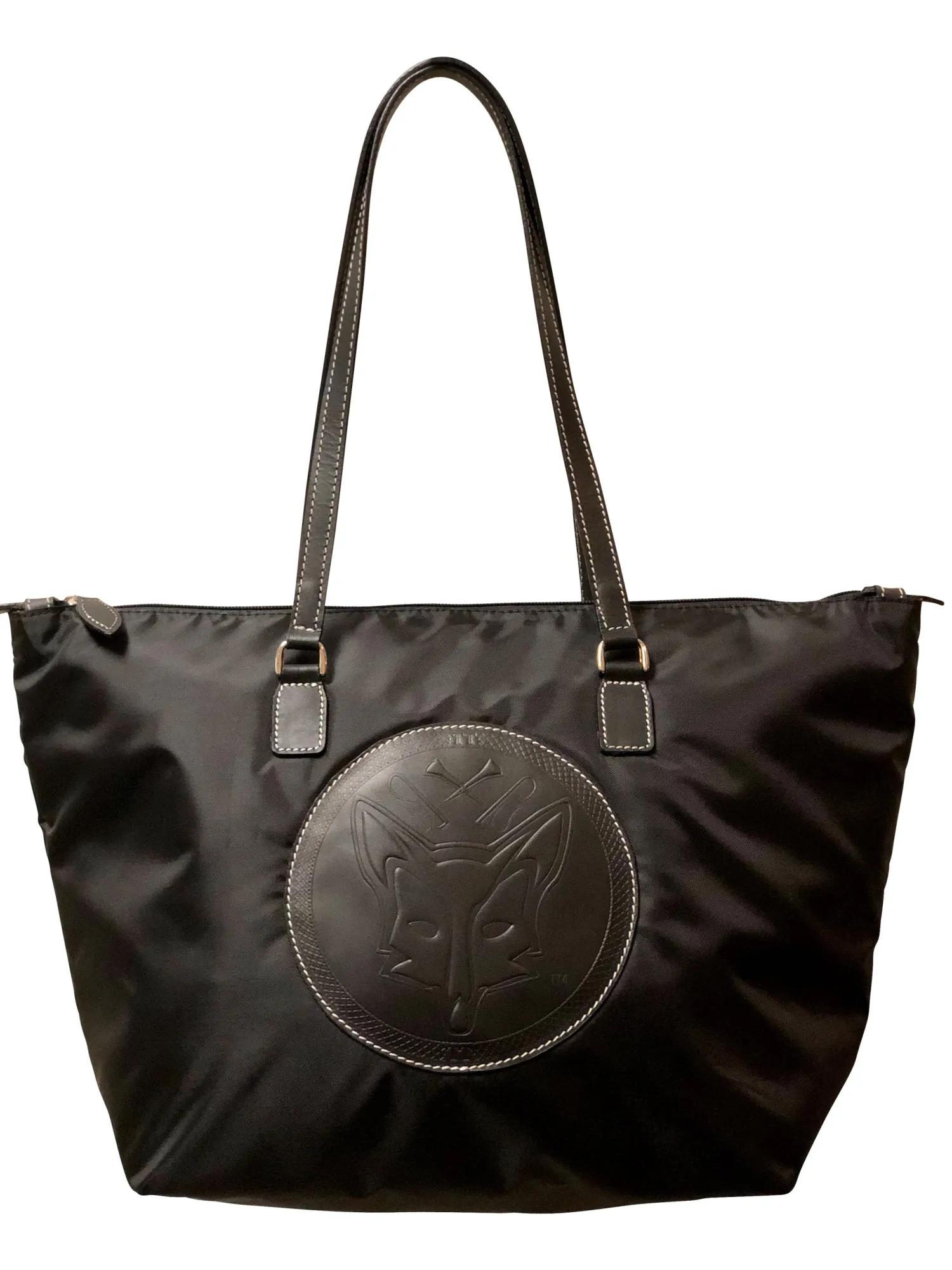 - Nylon back with leather trim.