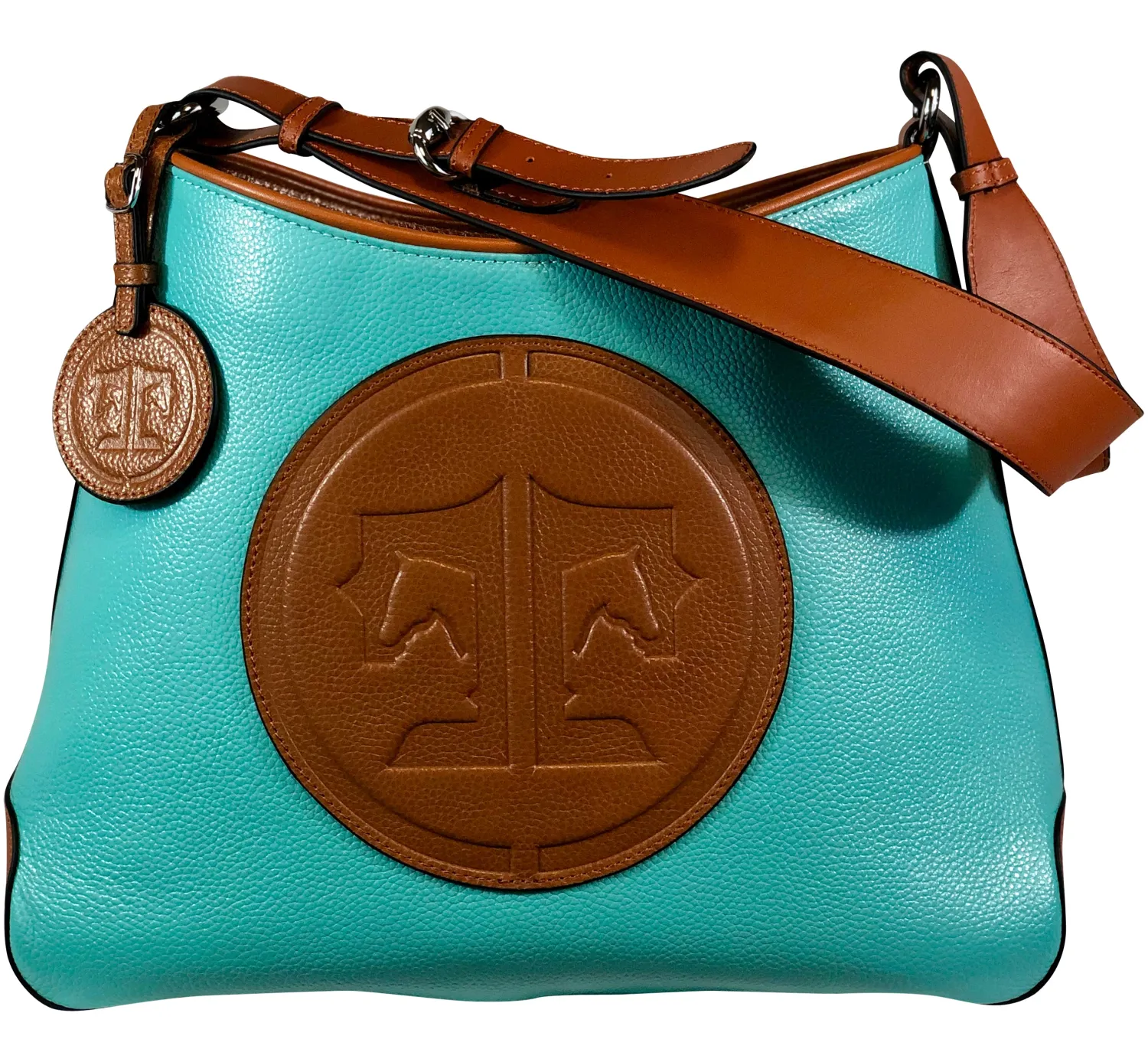 This stunning bag with adjustable shoulder strap keeps its shape over your shoulder. Available in 11 colors and four embossing options, this is the ultimate every day bag for horse lovers.