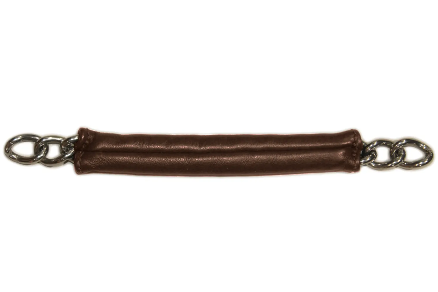 Walsh’s Leather Covered Curb Chain is tailor-made for sensitive horses that go well in a Pelham, but would benefit from a softer touch. The leather also muffles the noise of the curb chain itself. A standard stainless steel curb chain is fully-covered in very soft and supple smooth chap leather. It’s constructed with one seam that’s positioned away from the horse’s chin for chafe-free comfort. 8 1/2″L.