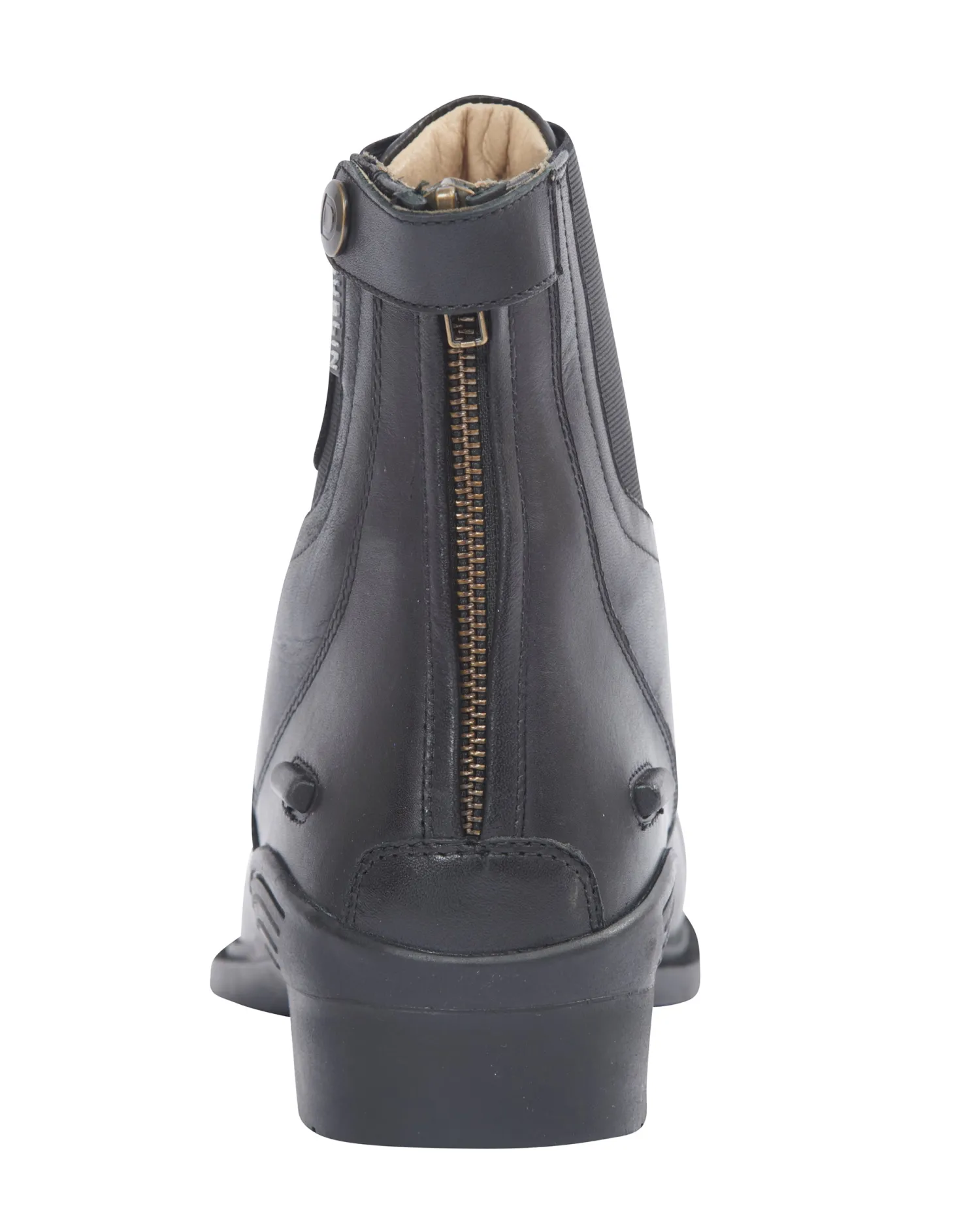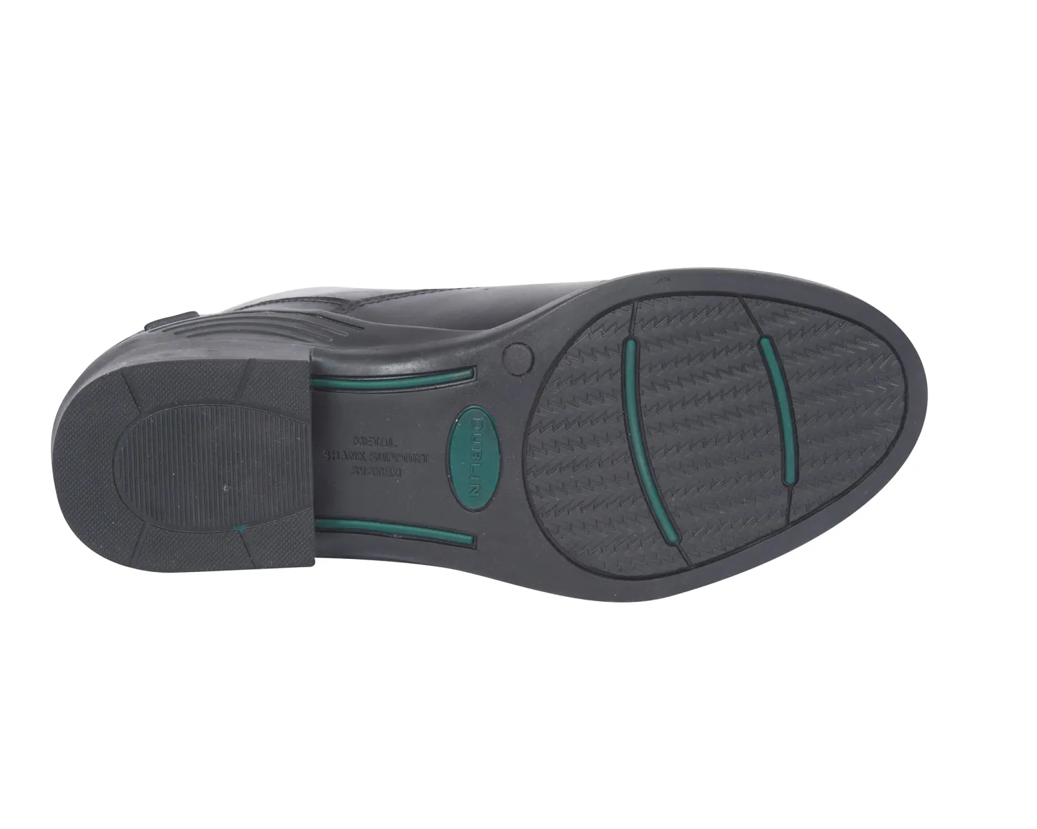 The Dublin® Evolution Faux Lace-Front Paddock Boot with rear zipper is crafted from full-grain European leather. It features a luxuriously comfortable Rider Comfort System (RCS) memory foam PU footbed. A molded side wall provides extra ankle support and protection, while a full leather lining makes this boot hardwearing.